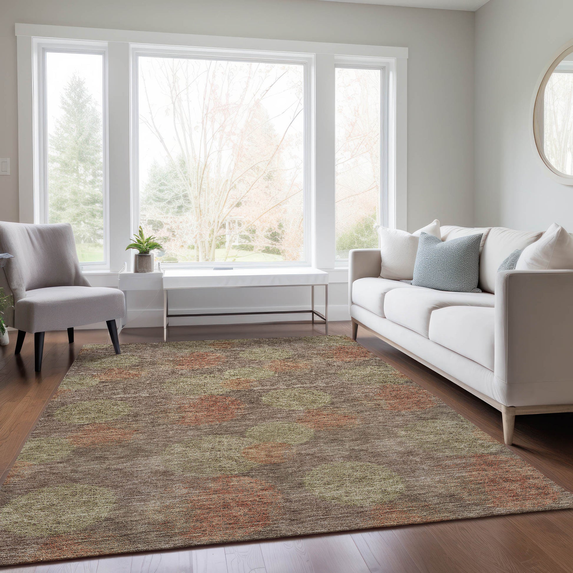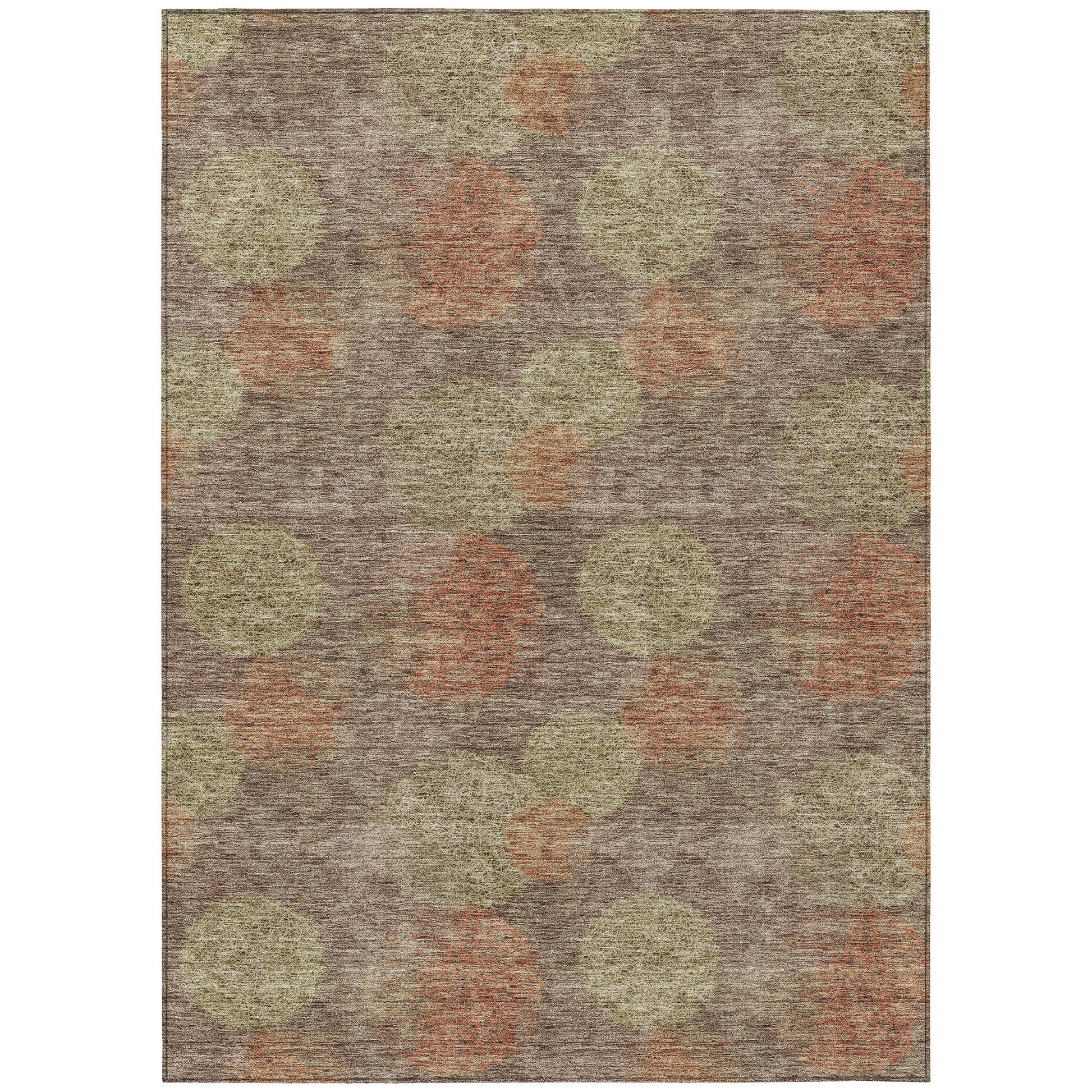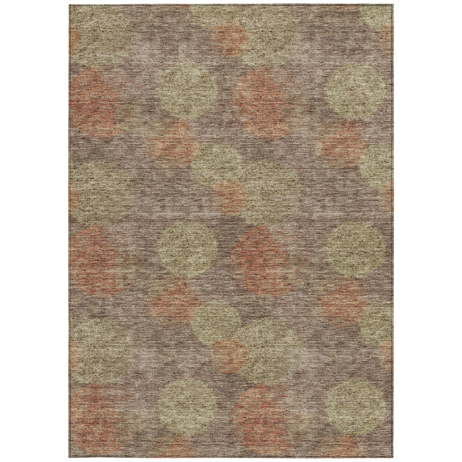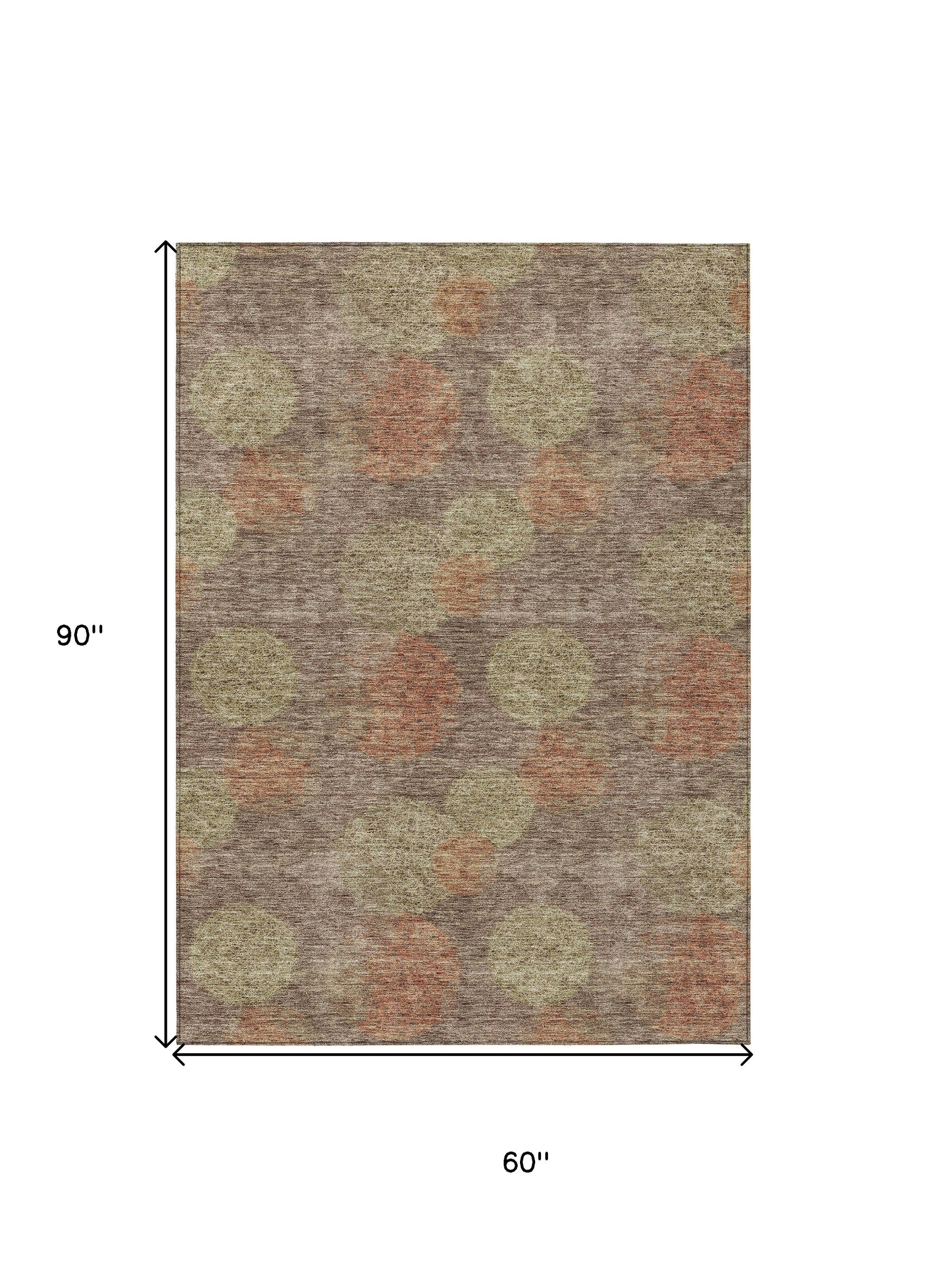 5' X 8' Brown Taupe And Sage Polka Dot Washable Indoor Outdoor Area Rug