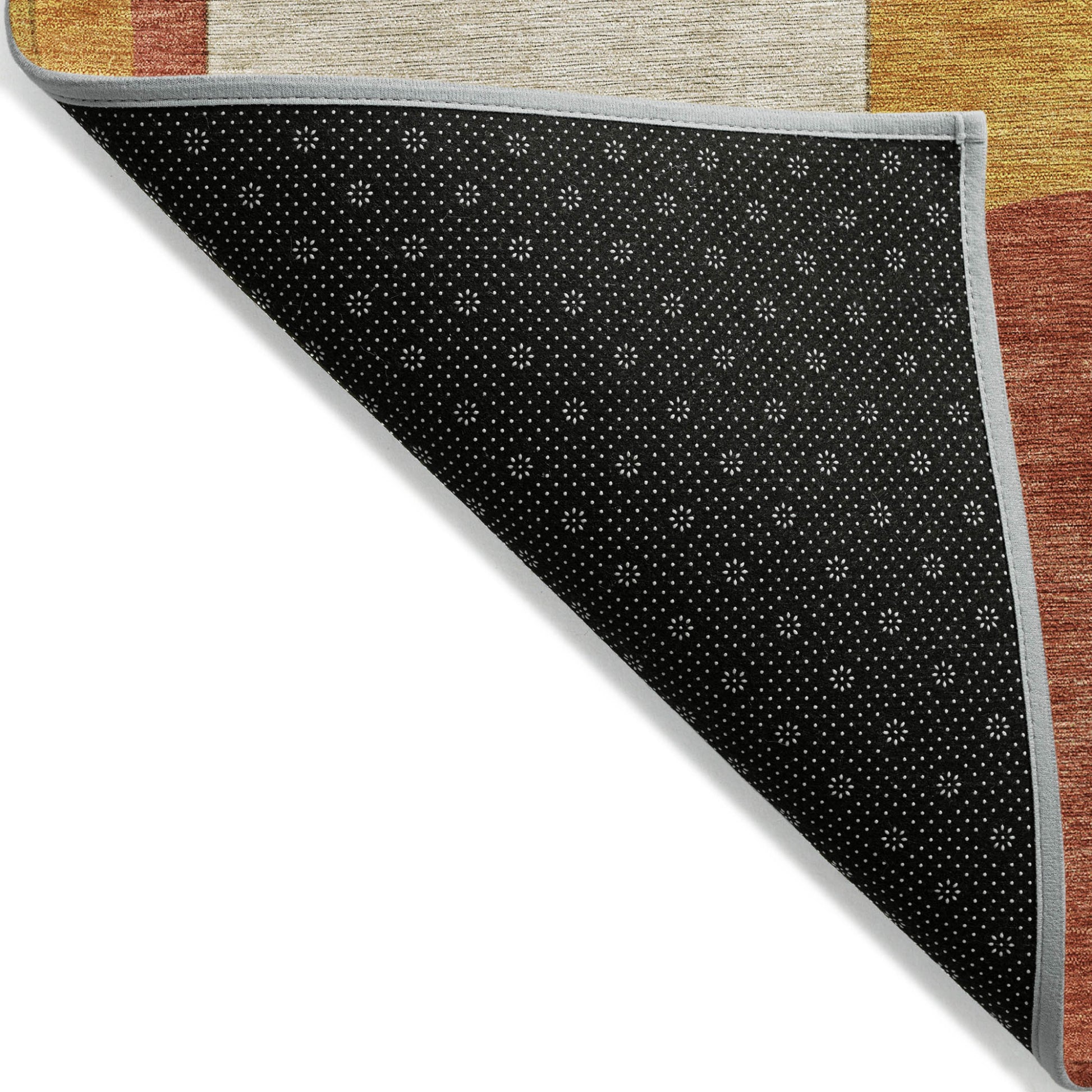 This 8-foot coral gold and ivory round geometric washable indoor outdoor area rug, is a great way to add warmth to a room. This geometric round shaped rug features a geometric pattern in coral, gold, and ivory that combines a good looking print with a unique and updated shape. The mix of shape, color, and design gives this rug refreshing visual interest. Ideal for outdoor spaces or high traffic areas with kids and pets, this rug is made from heavy duty polyester that is stain resistant to help repel water, dirt, and stains. Makes a great way to dress up your patio, porch, or poolside, but also works well as a durable and easy to maintain option in the kitchen, family room, or mudroom. 96-inch h x 96-inch w x 0.19-inch d.